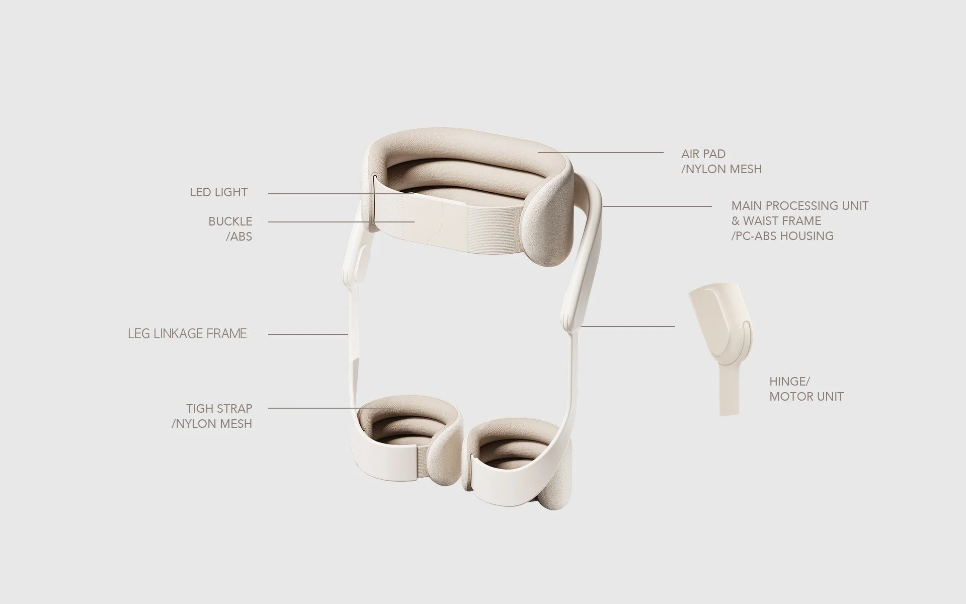 AirFit is an air-adaptive exoskeleton for seniors who need back and mobility support in daily life, providing maximum comfort with minimal friction so they can move independently and live with ease.