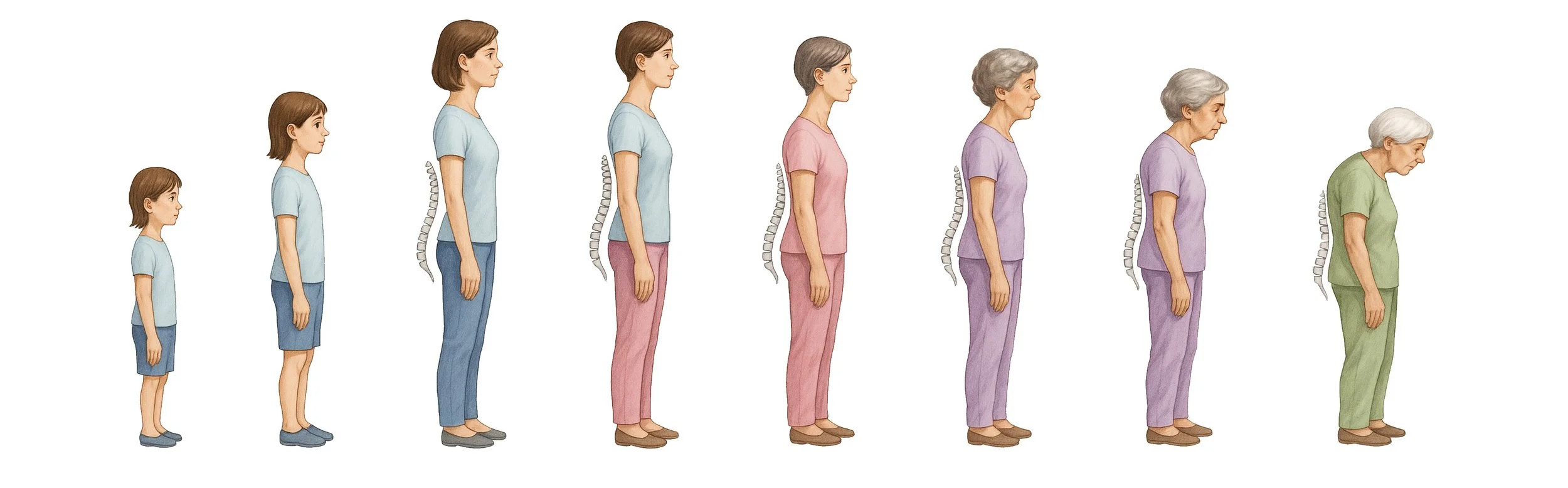 Because of this age-related loss of muscular support, the spine tends to bend forward and posture becomes more stooped. As a result, extra external support for the back becomes important to help keep the spine aligned and reduce discomfort.